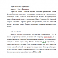 Первым заданием для заочников стал анализ и расшифровка письма из коллекции Алексея Деревицкого. Историкам предоставлялась возможность датировать источник по штампам и маркам, определить адресанта и адресата, расшифровать письмо. Адресатом всех писем была Ольга Алексеевна Деревицкая, автором писем – родной брат Ольги – Петр Алексеевич Деревицкий, с 20-х гг. XX в. живущий за границей. Практиканты отлично справились с заданием.