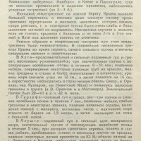 Насколько я помню, слухи о метеорите 1921 г. были основаны на ошибочном анализе зеленоватого стекловатого вещества типа волынскитов, который был сделан акад[емиком] А. А. Байковым в нашей университетской хим[ической] лаборатории. Он определил в нем 18% Ве. Я проделал поверочный анализ в другой лаборатории, причем оказалось, что это не Ве, a Na. Таким образом, загадочное вещество, о котором пошли слухи, как о метеорите, оказалось «жидким стеклом» Na2Si03, почему о нем я нигде и не писал. Насколько мне известно, в Крыму был найден лишь один железный метеорит, упавший в 1881 г. или 1883 г. в 12 клм к ЮЗ от г. Симферополя близ с. Саблы. Свидетелем падения была ныне умершая уборщица геолог[ического] каб[инета] Трубникова, от которой этот метеорит упал в 6 мтр во время работы ее на огороде. Вес метеорита был около тонны (60 пуд[ов]), причем он на 0,75 м торчал из земли. Кем-то он был увезен, но мне не удалось получить об этом никаких сведений.