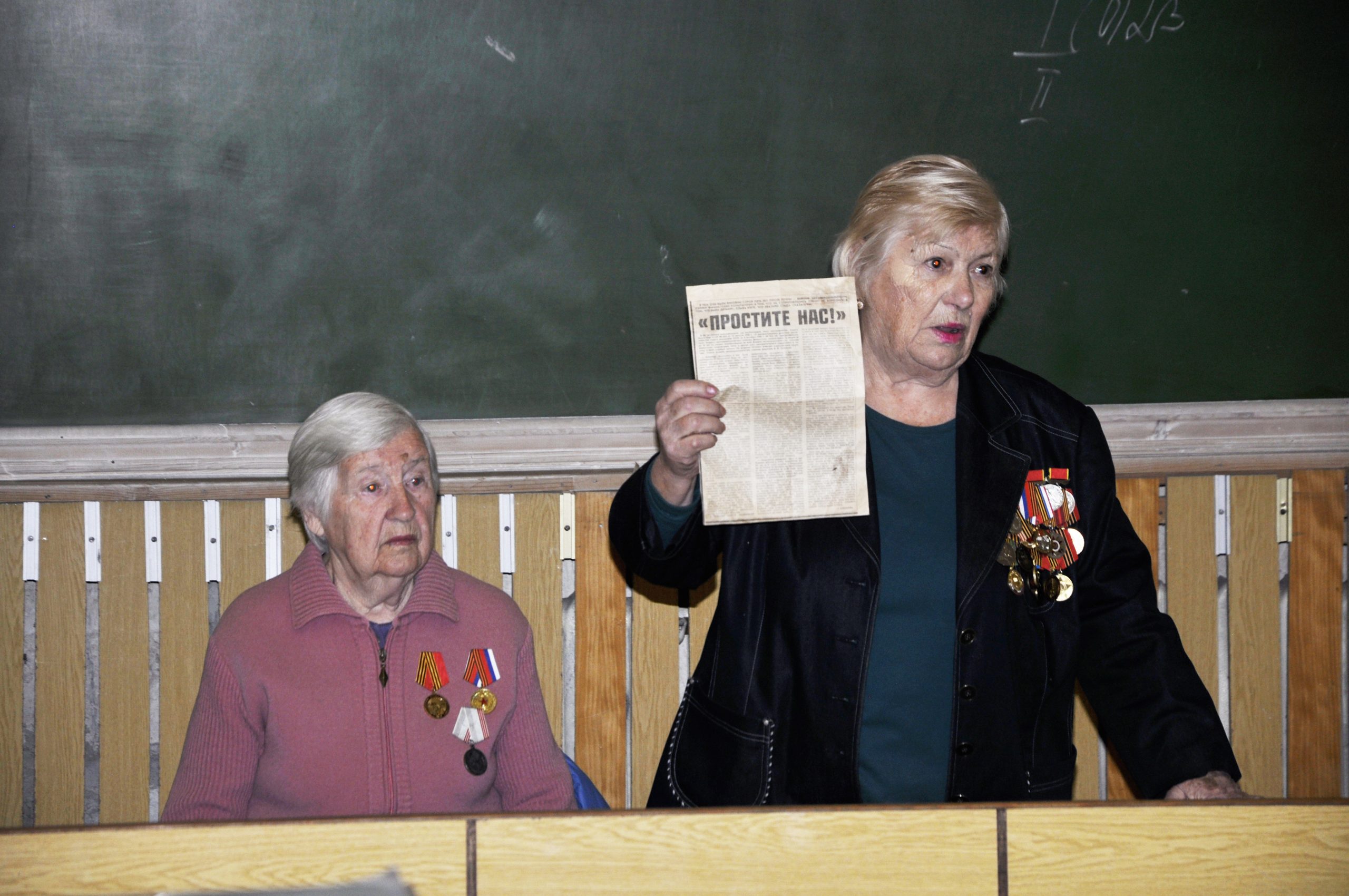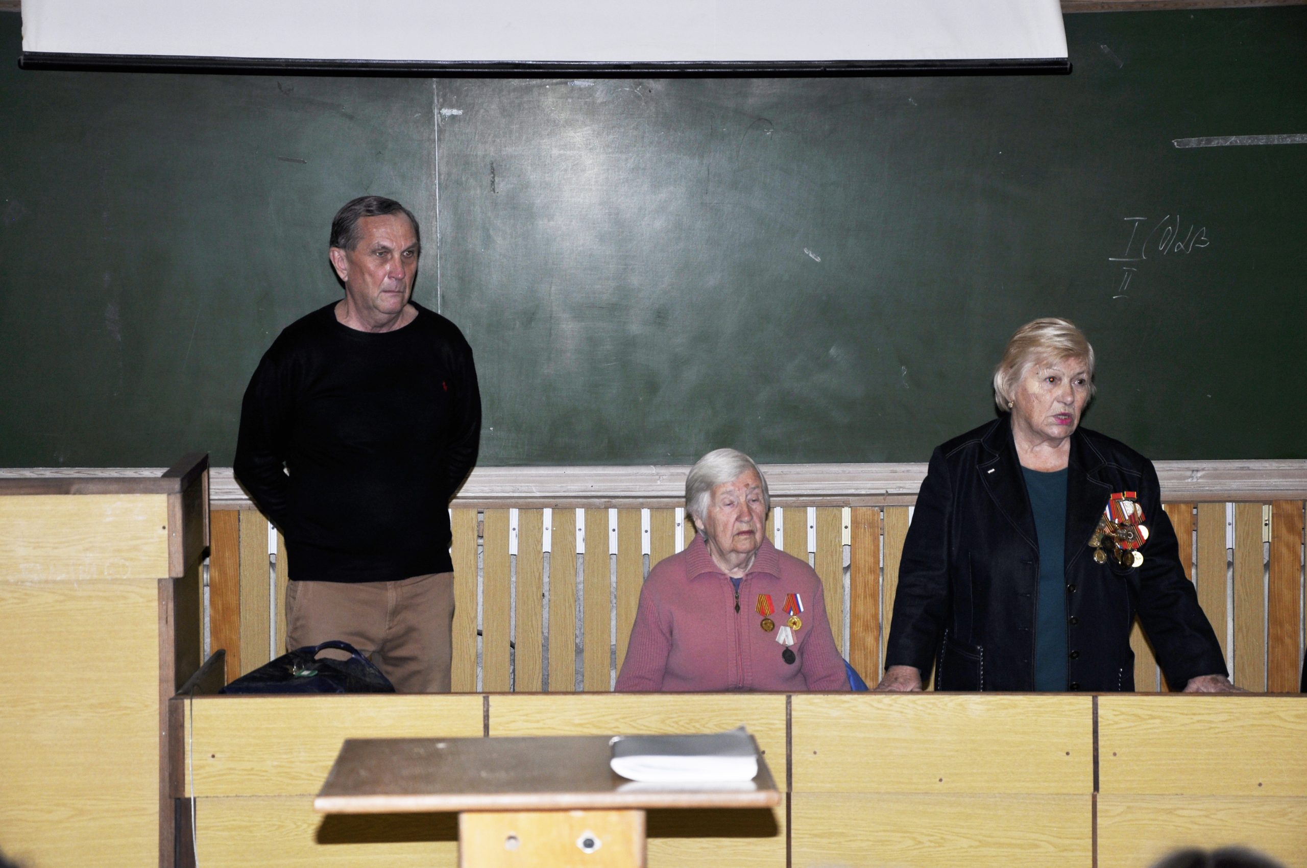 От Крымской республиканской организации ветеранов и инвалидов бывших несовершеннолетних узников нацизма выступила очевидец событий – узник концлагеря – заместитель председателя организации ветеранов Н. В. Федотова, которая рассказала о зверствах и ужасах, творившихся в концлагерях в период Великой Отечественной войны. Приглашенный на мероприятие начальник Управления молодежи, спорта и туризма Администрации города Симферополя А. В. Голубица обратился к молодежи с призывом хранить историческую память. Поэт А. И. Акульев прочел стихотворения о Родине.