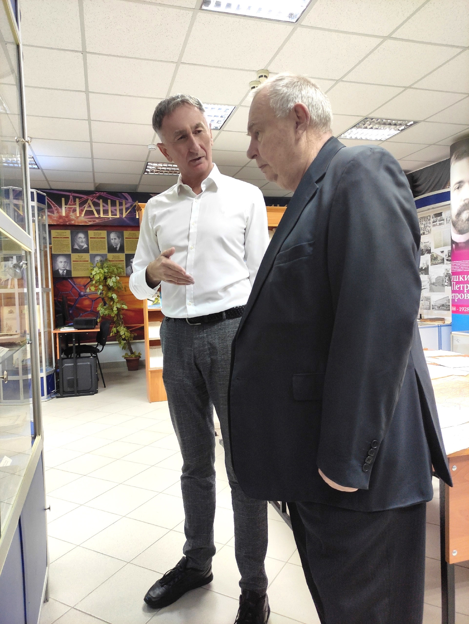 С огромным интересом он познакомился с выставкой «Тайны чемодана профессора А. Н. Деревицкого» и новой экспозицией в честь 100-летия со дня рождения профессора М. Ф. Слинкина.