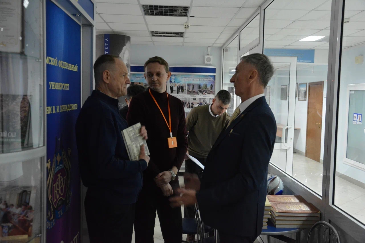 В Музее истории Университета 4 марта 2026 г. собрались ветераны вуза, профессора, студенты – представители различных институтов и академий, дарители Музея, представители музеев и библиотек Симферополя и Севастополя. Директор Музея истории КФУ профессор Андрей Непомнящий представил собравшимся новое издание «Десять лет преемственности российских университетских традиций», посвященное 10-летию работы университетского центра изучения истории высшего образования и патриотического воспитания молодежи.