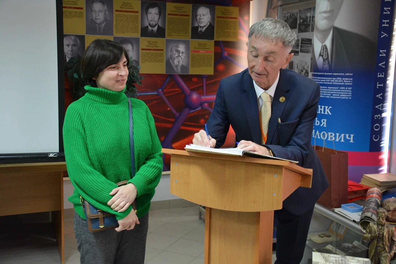 Отдельное внимание на презентации и в новой книге уделено дарителям – неравнодушным людям из различных регионов нашей огромной страны, которые присылают вещи, документы, связанные с прошлым структур нынешнего КФУ им. В. И. Вернадского. И сегодня Музей получил в дар от краеведа и мецената Анастасии Александровны Михайловой отдельные вещи, связанные с историей Крымского медицинского института советской эпохи. очередной взнос в копилку музейных раритетов внесла директор Научной библиотеки КФУ Наталья Кадуха.