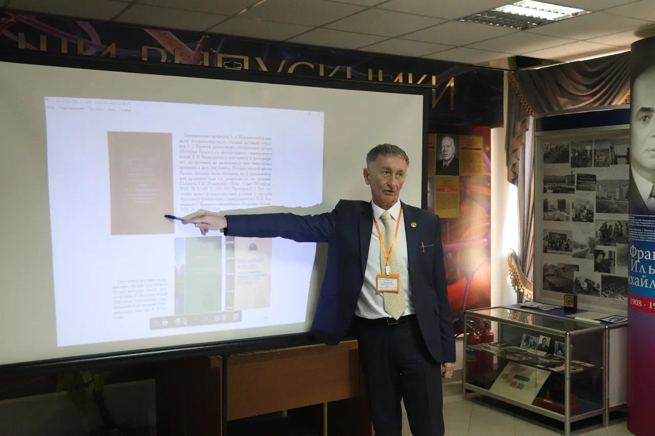 Директор Музея истории охарактеризовал такие формы работы со студентами как подготовка исторических реконструкций «Досуг с достоинством», «Профессорский кавардак», «И тыл там тоже фронтом был…», проведение квестов «путешествие в университет» на территории ботанического сада, квизов к различным датам по истории вуза, круглых столов по различным вопросам прошлого крымской высшей школы, научных семинаров, памятных мероприятий, презентаций к разным датам. отдельно была выделена роль вузовского Музея истории в учебном процессе университета – проведение архивной и музейной практик студентов истфака на протяжении нескольких лет, реализация программы дополнительного профессионального образования, мастер-классы, экскурсии по старым корпусам вуза.