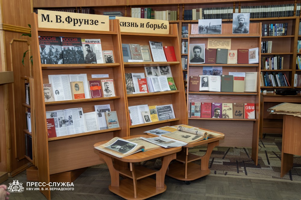 31 октября в Научной библиотеке Крымского федерального университета им. В. И. Вернадского состоялось открытие книжной выставки в честь 100-летия со дня смерти советского полководца Михаила Васильевича Фрунзе, который возглавлял несколько армий, сражающихся против адмирала А. В. Колчака и Повстанческой армии Нестора Махно. С января 1925 г. занимал должность председателя Реввоенсовета СССР и наркома по военным и морским делам. В экспозиции представлены архивные документы, а также публицистические и художественные произведения о его деятельности.