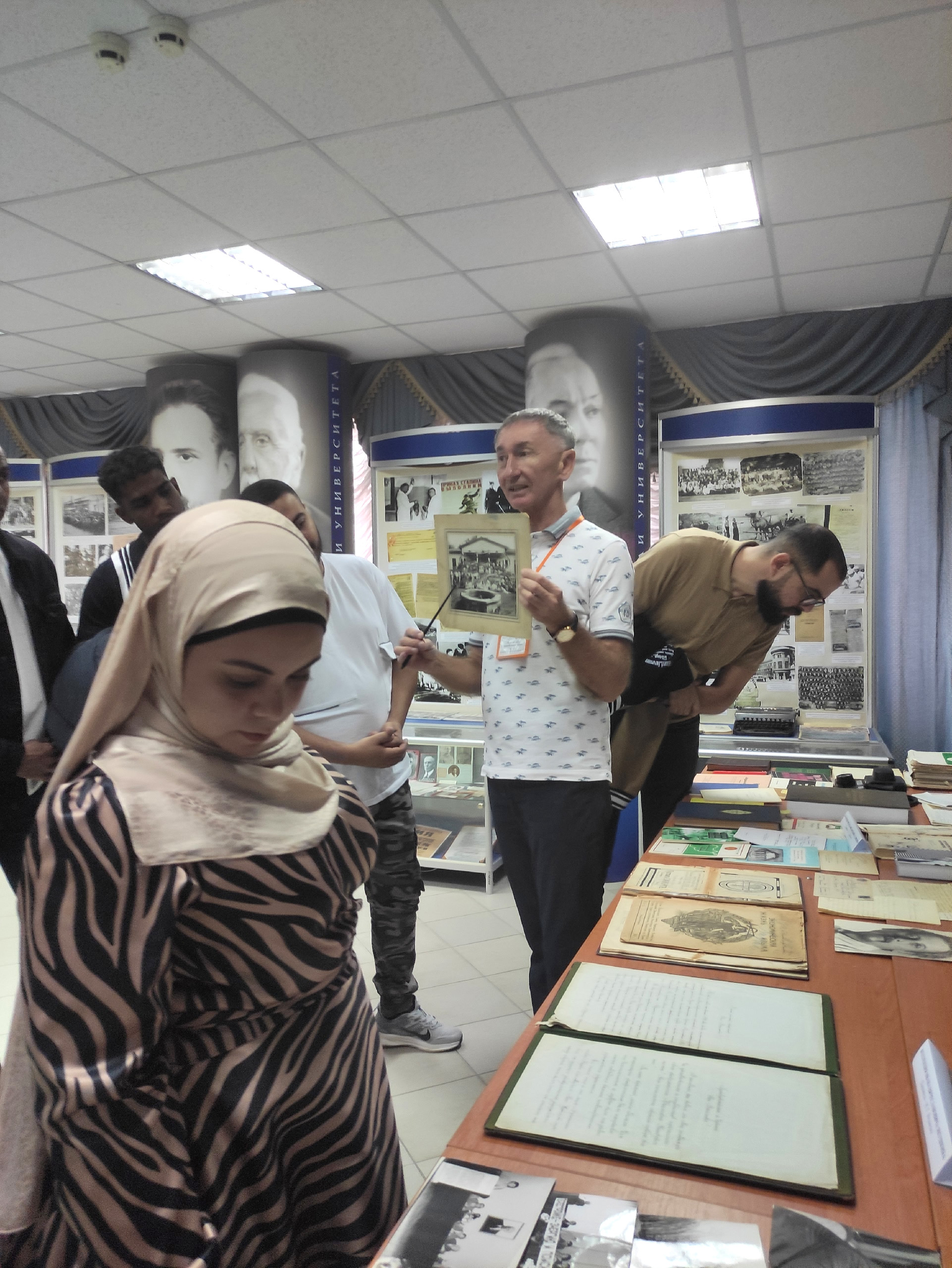25 сентября гостями Музея истории стали иностранные студенты, пополнившие в этом году число обучающихся Университета. Отдельную экскурсию для них провел директор Музея, профессор А. А. Непомнящий.