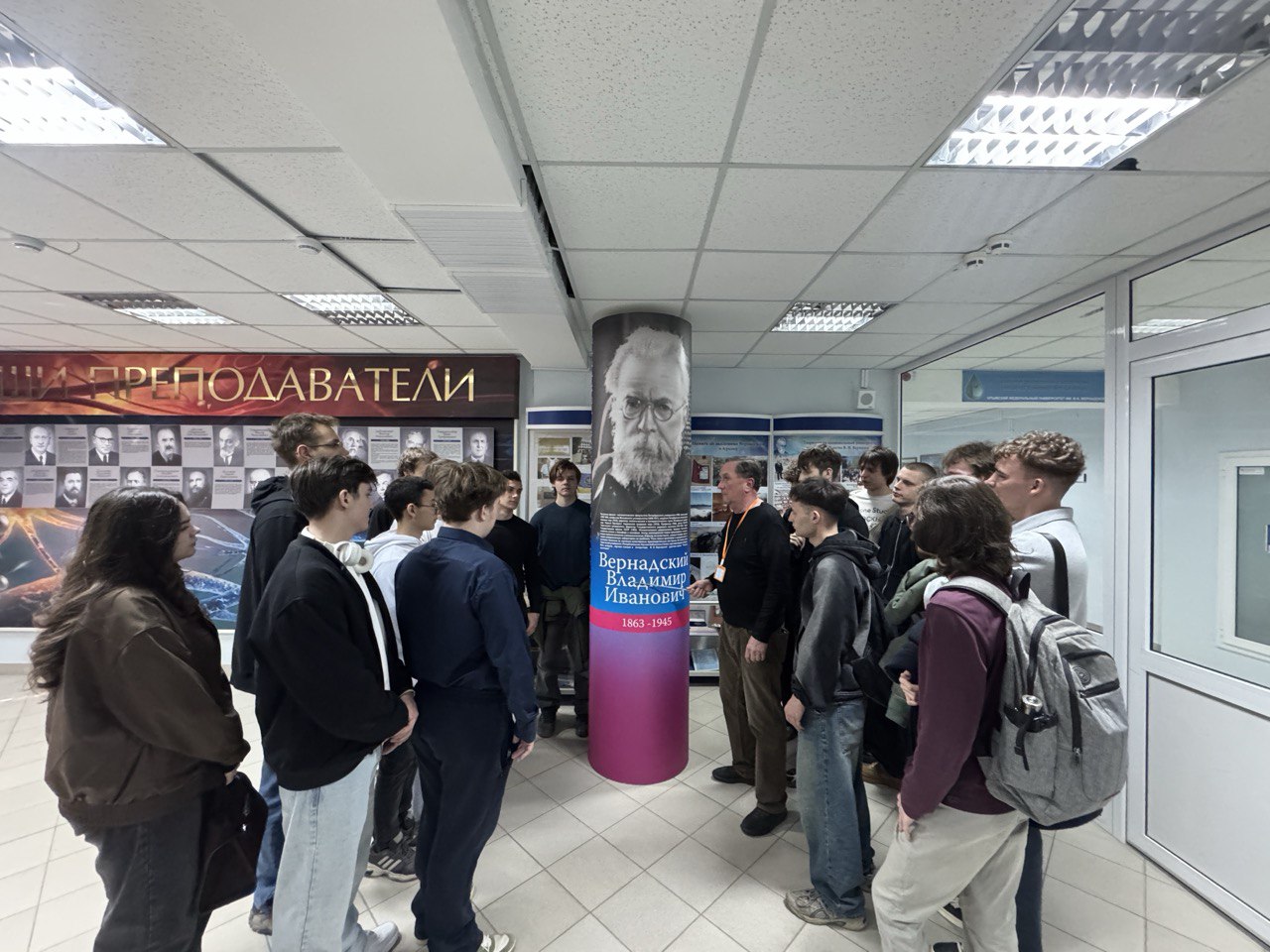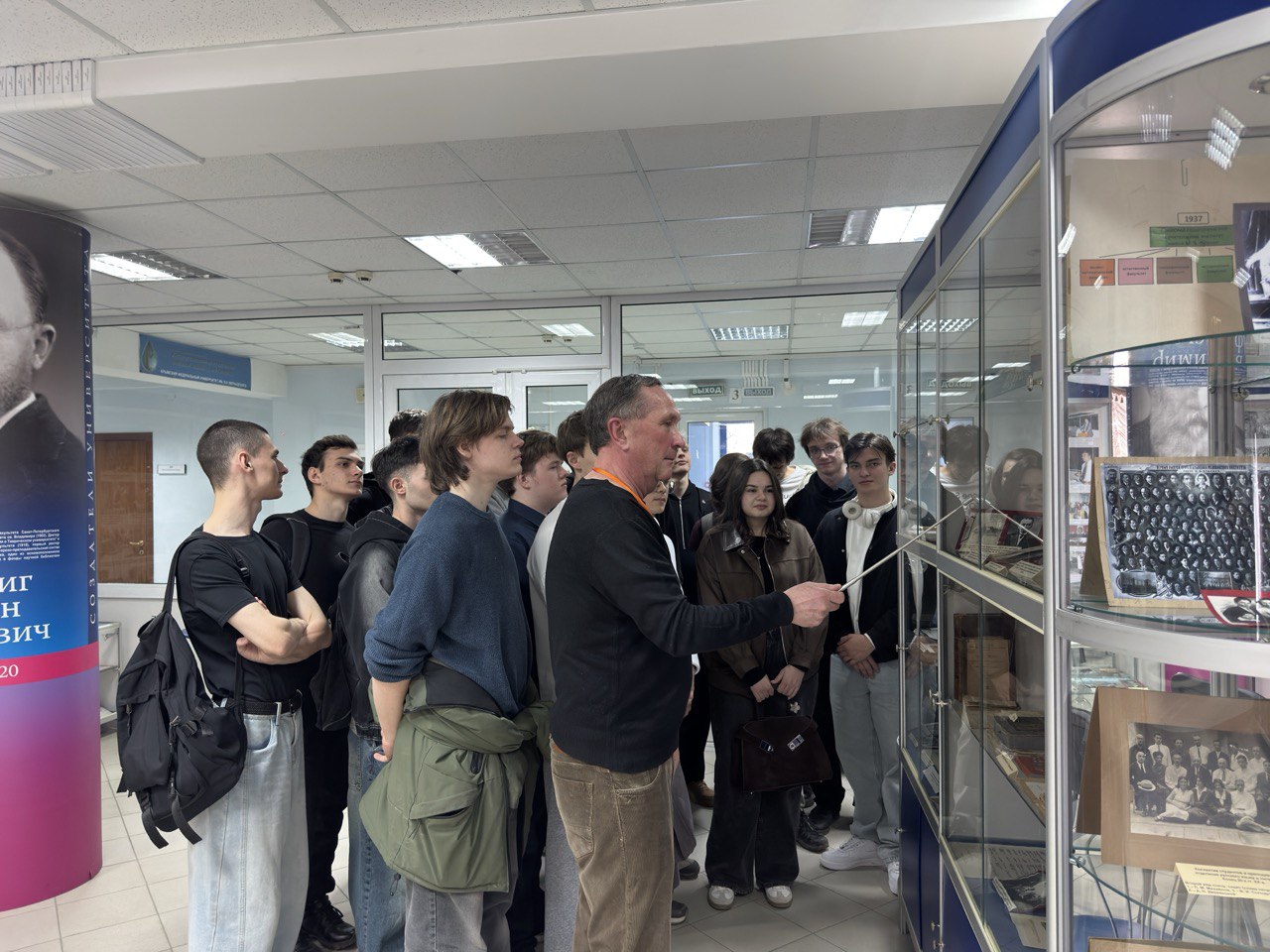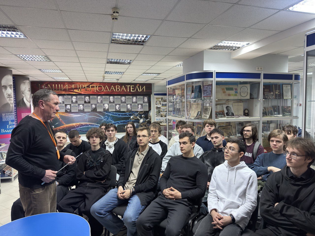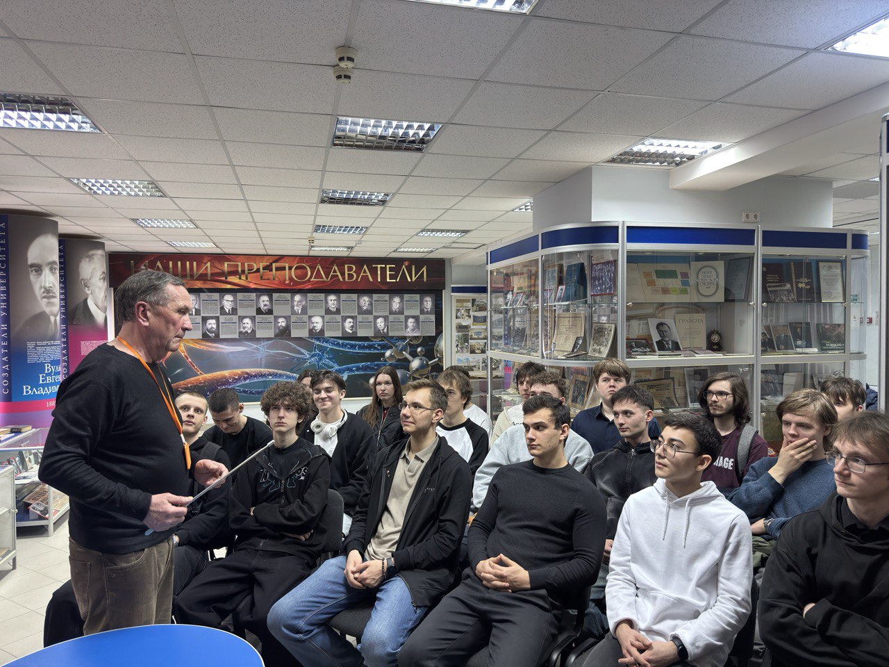 После завершения «круглого стола» заведующий отделом учебно-образовательных программ и экскурсий Музея В. А. Герасимов провел для собравшихся экскурсию «Более века на службе науке и просвещению».