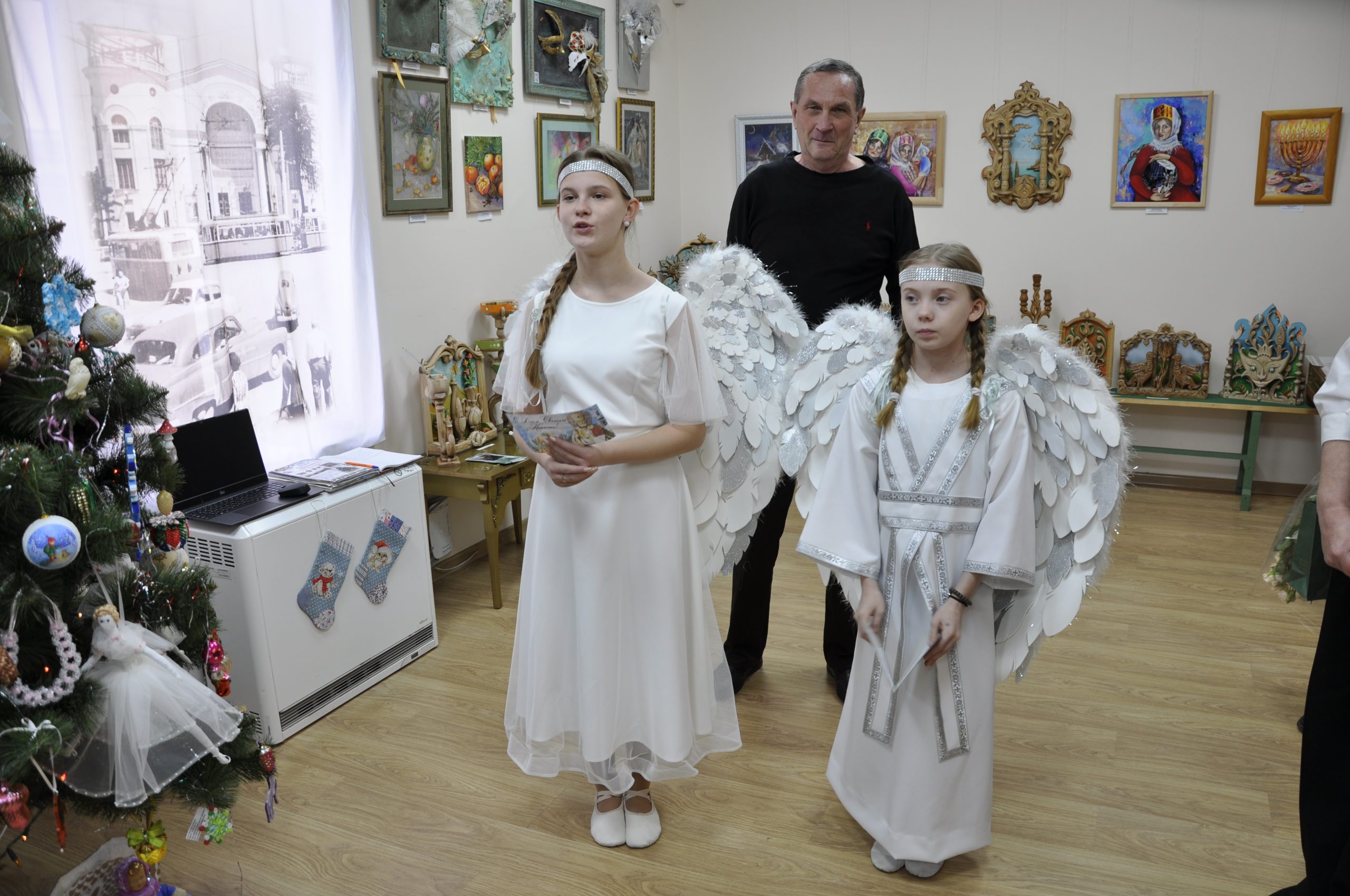 На организованной выставке представлены разнообразные тематические экспонаты: ювелирные украшения, керамические изделия, шитье, резьба по дереву, куклы, игрушки в новогодней тематике. Свои работы презентовали собравшейся публике художники, мастера декоративно-прикладного искусства. Основным Украшением зала стала традиционная елка, наряженная в этом году по-особому – игрушками ручной работы и ретро-игрушками. В праздновании приняли активное участие многочисленные деятели культуры и искусства Крымского полуострова – И. И. Калько, Е. К. Лелеко и др. Студенты Крымского федерального университета им. В. И. Вернадского прочли рождественские стихи и баллады.