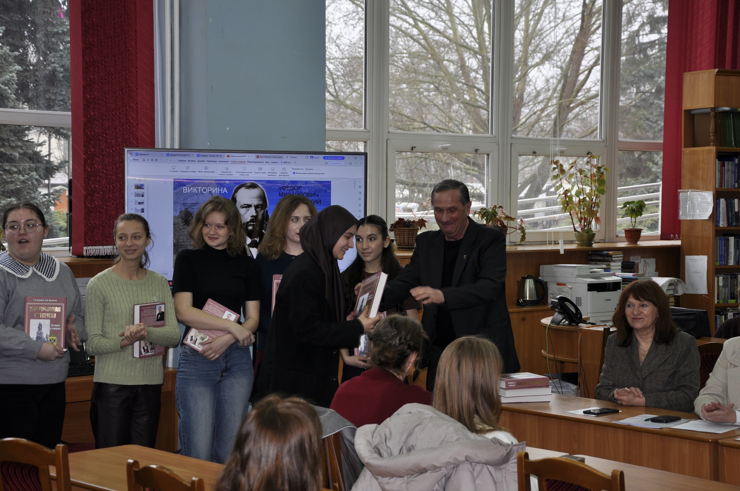 В рамках лектория студенты и школьники приняли участие в викторине «Достоевский в Крыму», победители получили познавательные экземпляры книг об истории Таврической губернии, собравшиеся прослушали лекцию доцента кафедры русского языка и культуры речи С. В. Капустиной.