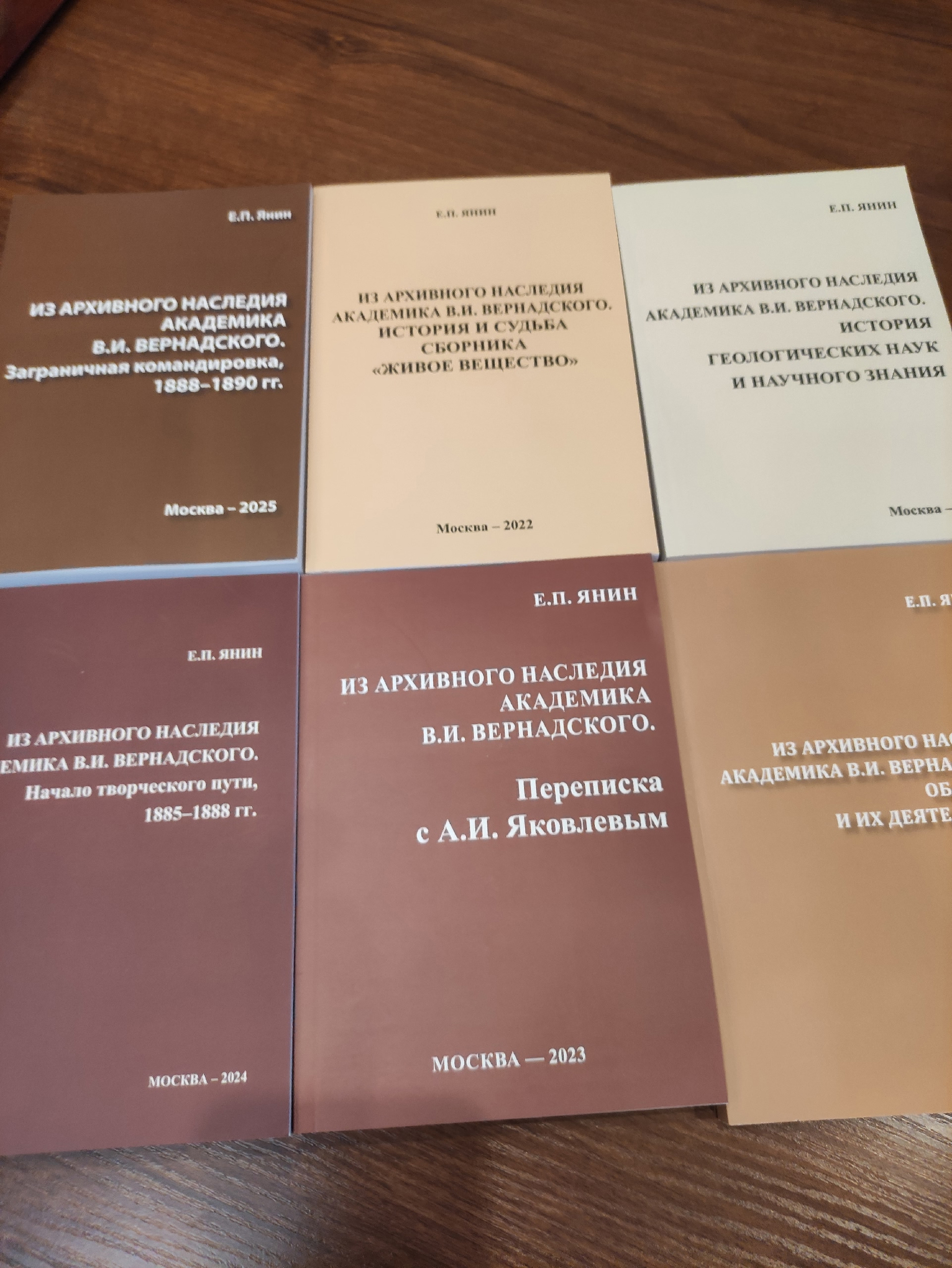 Благодаря подвижнической деятельности московского ученого, кандидата геолого-минералогических наук, руководителя Группы «Научное наследие В.И. Вернадского и его школы» Евгения Петровича Янина научно-вспомогательная библиотека Музея истории Крымского федерального университета им. В. И. Вернадского пополнилась уникальным собранием трудов ученого, посвященных различным периодам жизни академика В. И. Вернадского.