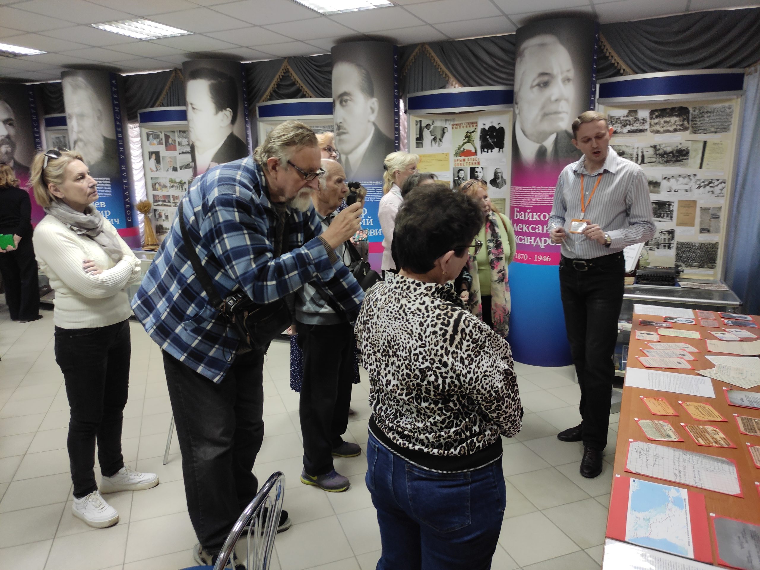 Заведующий фондовым отделом Музея Д. А. Ломакин познакомил собравшихся с основными этапами истории первого крымского вуза, а также представил недавно подготовленную экспозицию «Скромные герои Великой Отечественной: преподаватели и студенты крымских вузов – участники боевых действий», приуроченную к годовщине освобождения Крымского полуострова. Директор Музея, профессор А. А. Непомнящий провел для гостей экскурсию «Тайна чемодана профессора А. Н. Деревицкого». Об интересе к изложенному материалу свидетельствуют возникшие многочисленные вопросы краеведов, ставшие основой для продолжительной беседы о судьбах деятелей высшей школы Крыма.