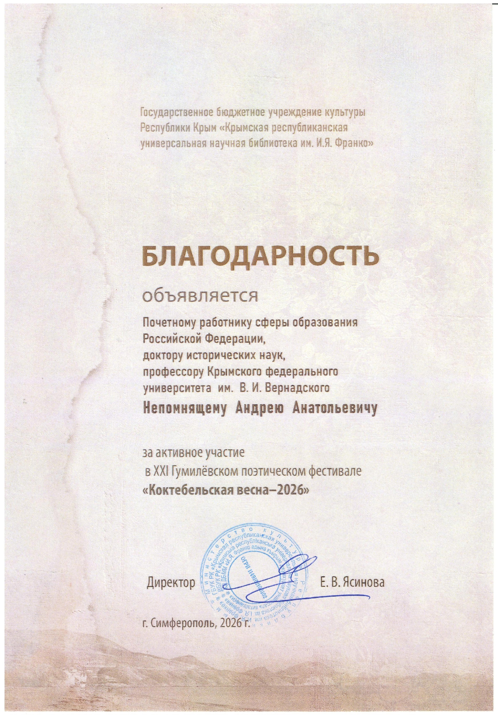 16 апреля 2026 г. Музей истории Крымского федерального университета им. В. И. Вернадского посетили участники XXI Гумилевского поэтического фестиваля «Коктебельская весна – 2026». Среди гостей также были члены Клуба коренных симферопольцев.