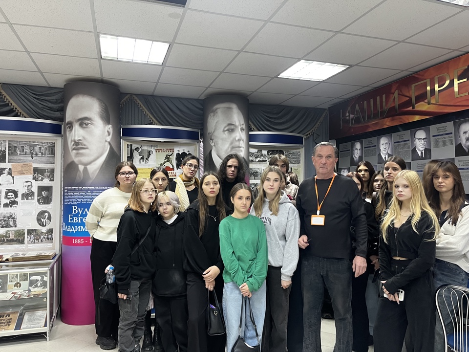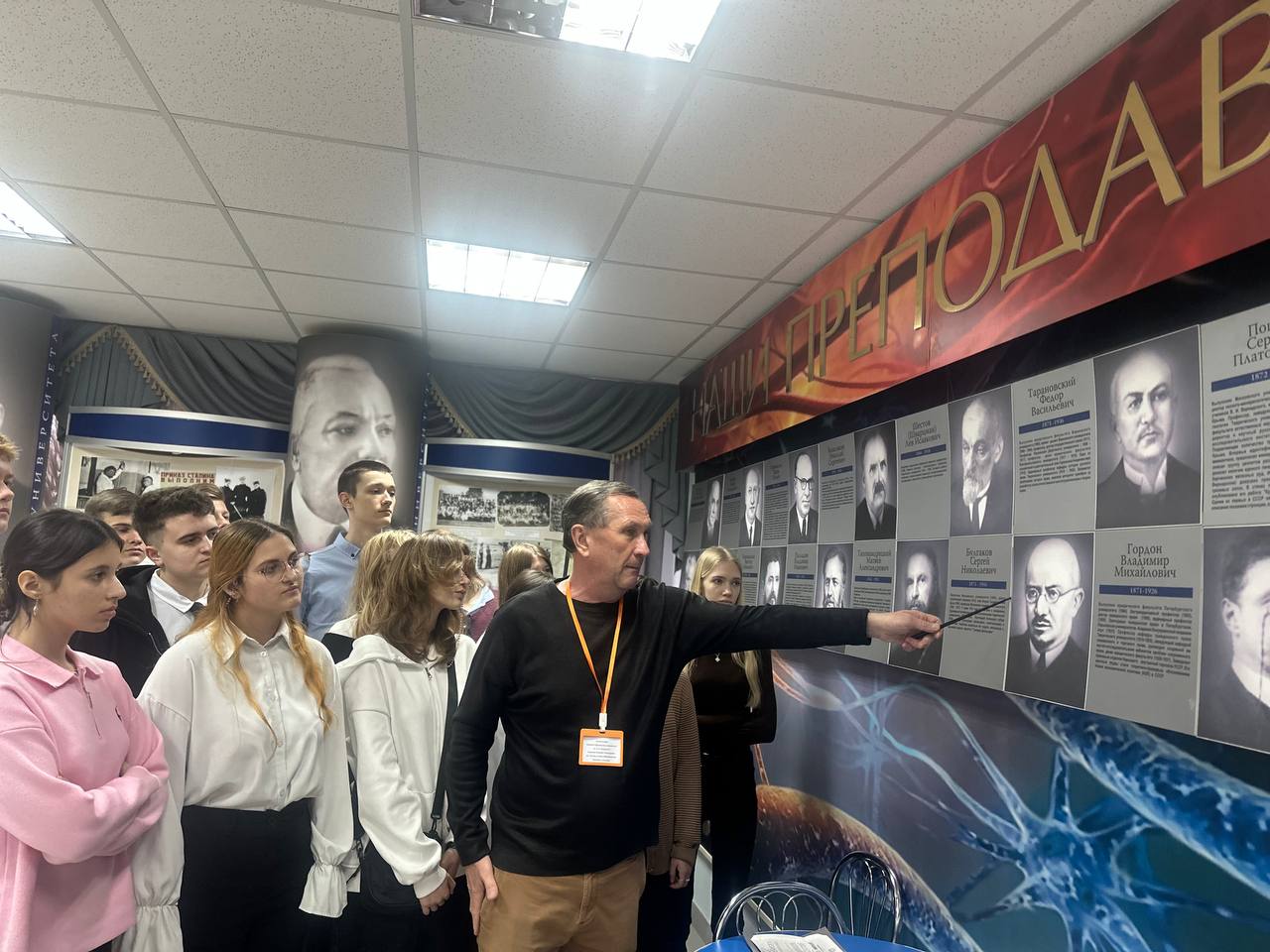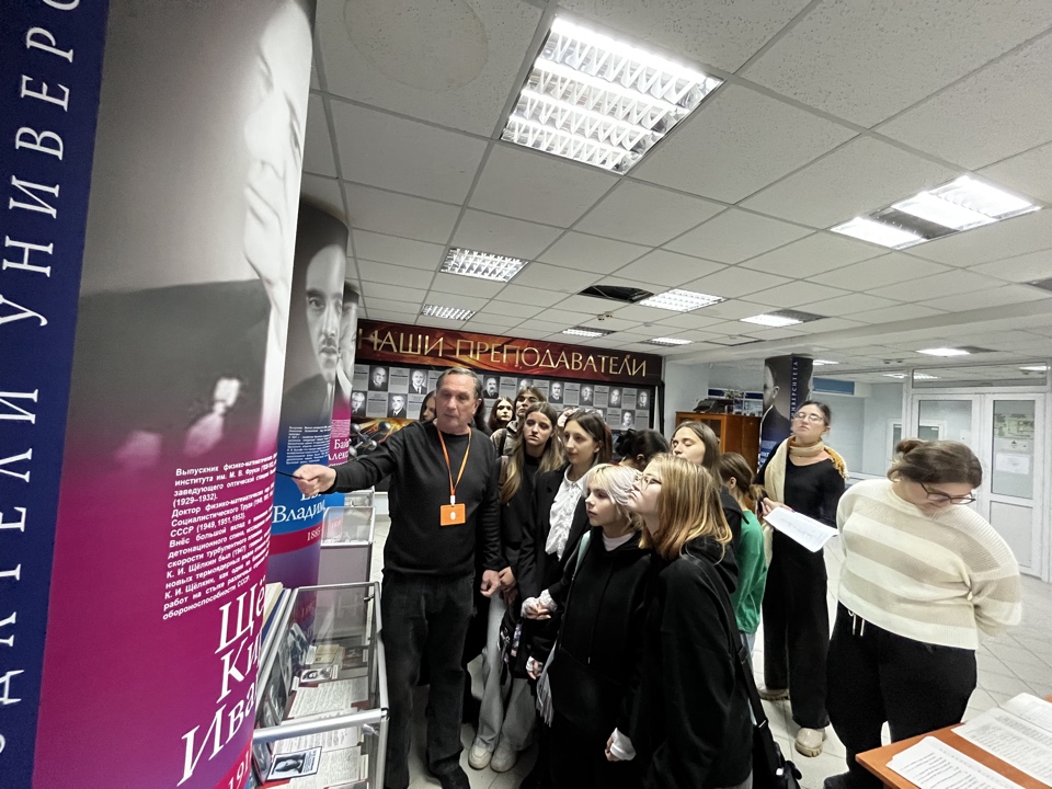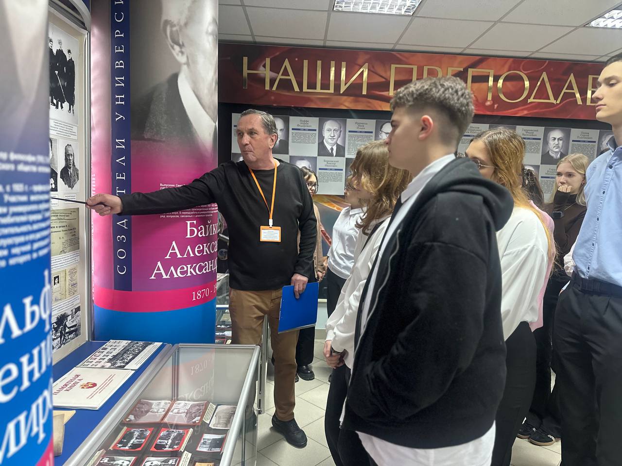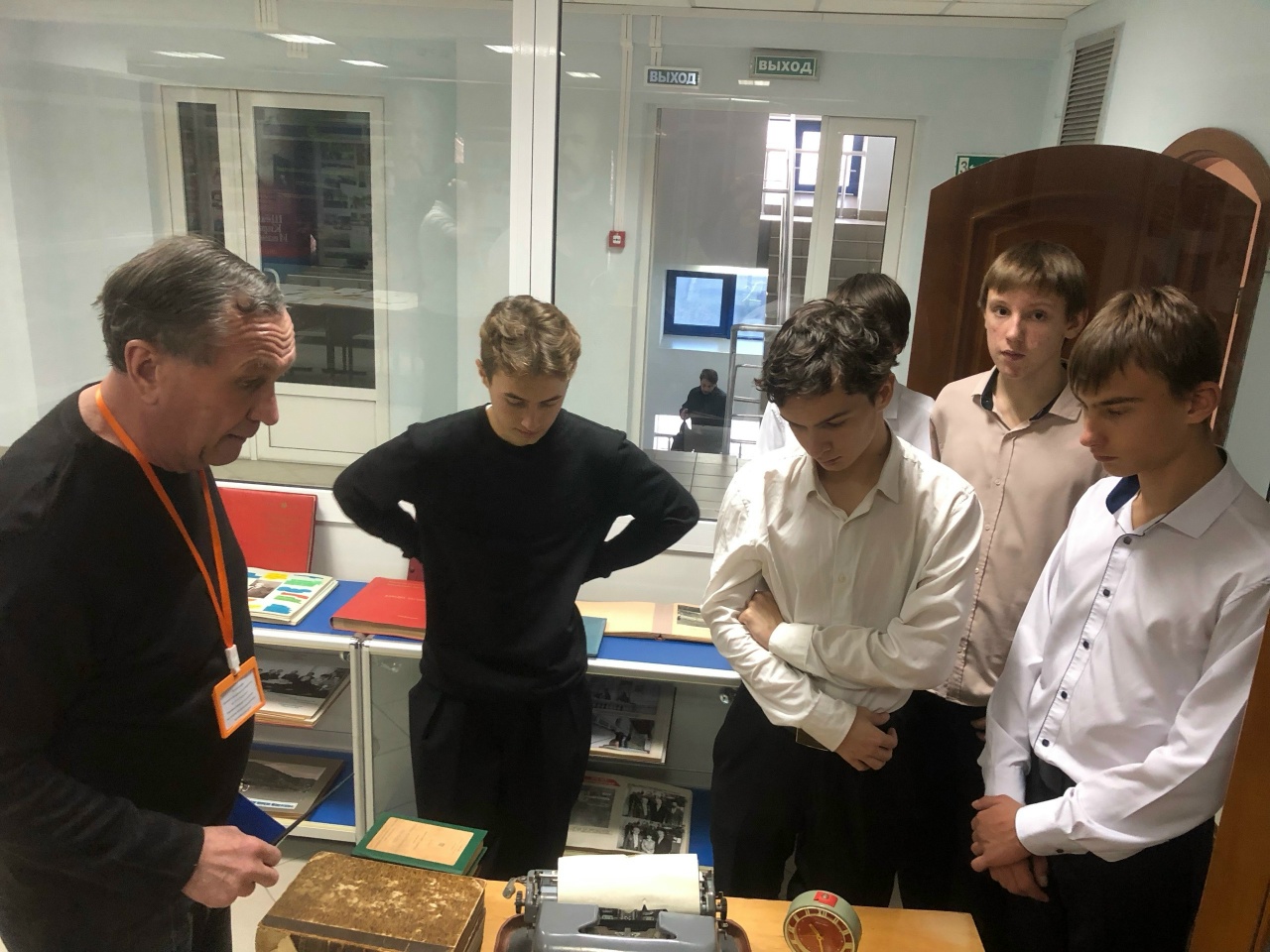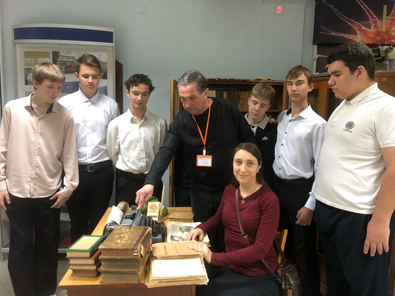 12 и 15 декабря Музей посетили обучающиеся Романовского колледжа индустрии гостеприимства, 19 декабря – ученики СОШ № 35 им. Е.Ф. Дерюгиной, 22 декабря – ученики СОШ № 15 им. А. П. Шеплякова. Заведующий отделом музейно-образовательных программ и экскурсий Музея истории В. А. Герасимов провел для гостей экскурсию «107 лет служения науке».