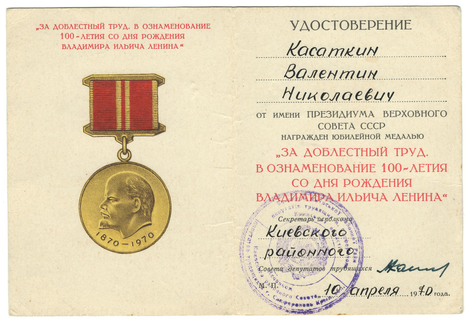 Музей истории Крымского федерального университета им. В. И. Вернадского выражает благодарность сотрудникам Крымской республиканской универсальной научной библиотеки им. И. Я. Франко, ее директору Елене Валентиновне Ясиновой и ученому секретарю библиотеки Поляновской Жанне Леонидовне за переданные материалы о В. Н. Касаткине в фонды Музея.