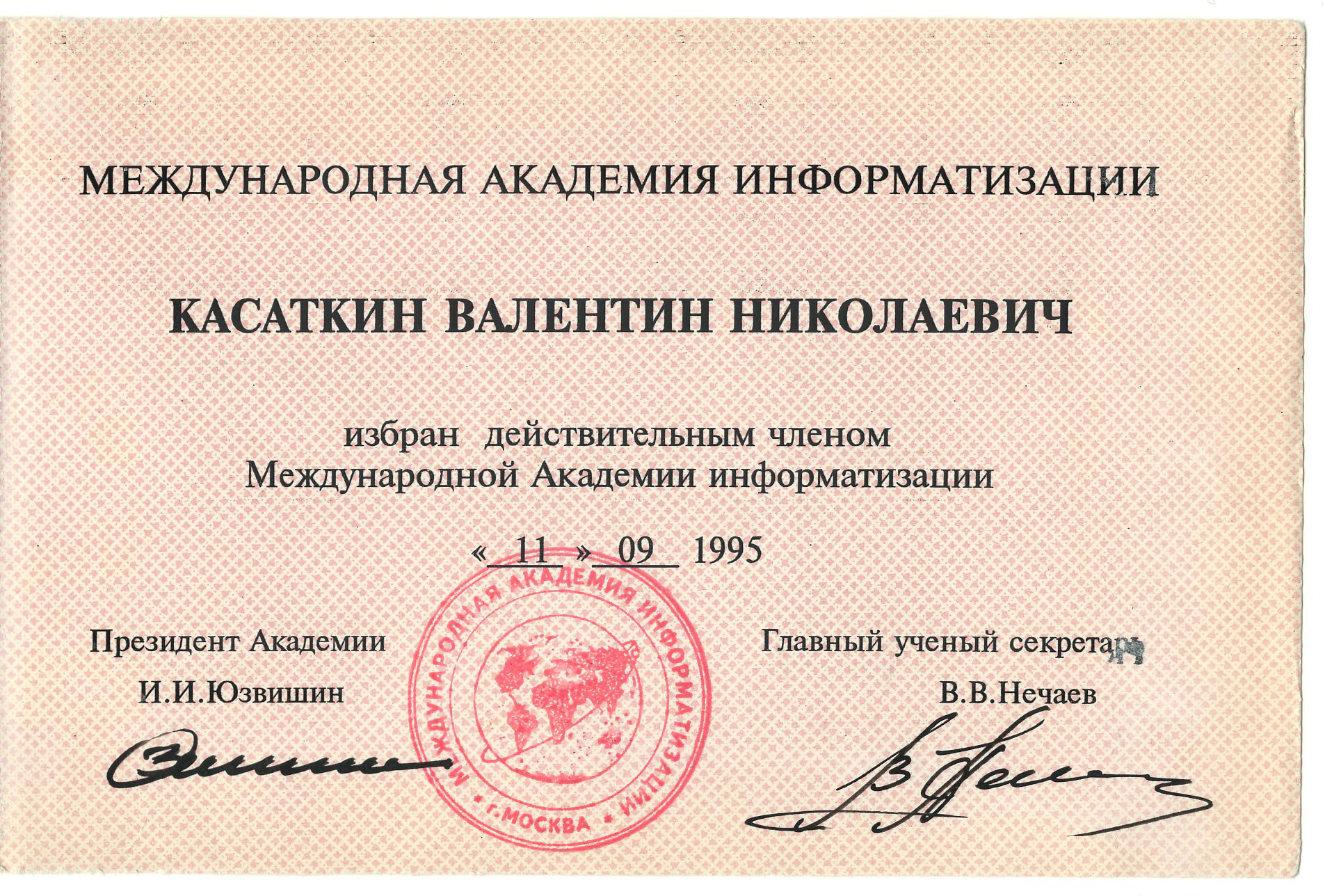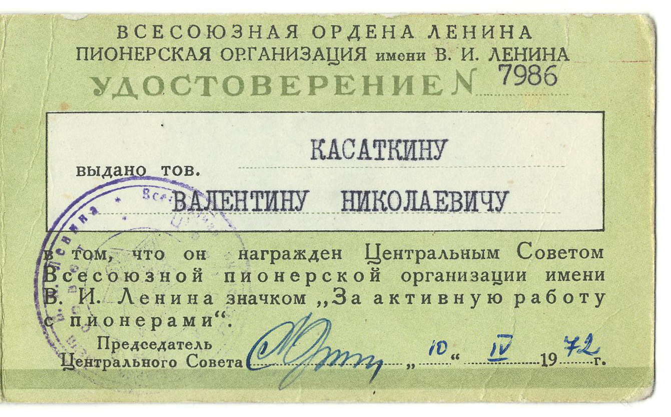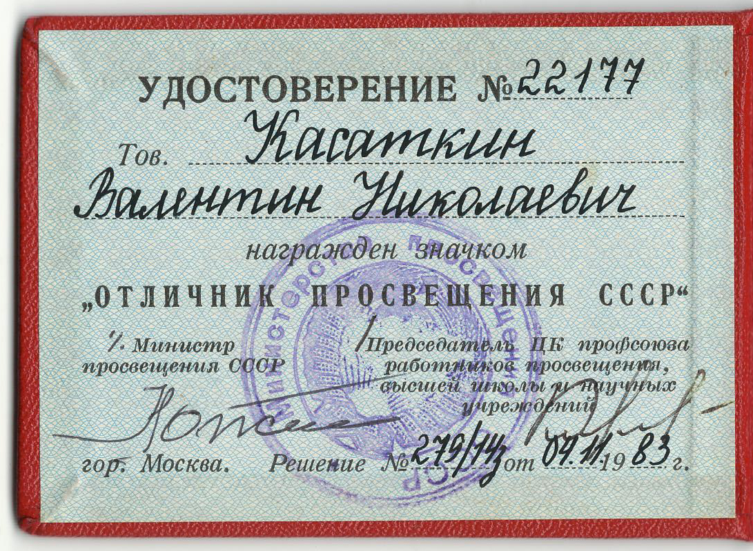 В течение 35 лет Валентин Николаевич был бессменным руководителем секции кибернетики, а последние 10 лет жизни – Президентом МАН. Благодаря научным контактам В. Н. Касаткина, в МАН с ребятами занимались ведущие ученые СССР – академики А. Н. Колмогоров, В. М. Вдовенко, члены-корреспонденты Академии наук Е. Л. Ющенко, А. А. Стогний, А. П. Ершов и десятки других. За эти годы в МАН получили путевки в научную жизнь десятки тысяч школьников. Можно по праву сказать, что воспитание будущих ученых было делом жизни В. Н. Касаткина.