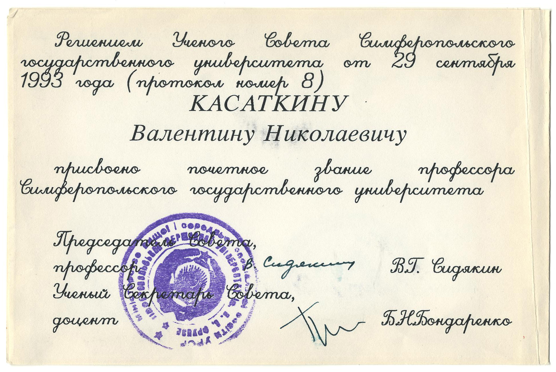 Профессор Валентин Николаевич Касаткин: первый кибернетик Университета, основатель Малой академии наук Крыма