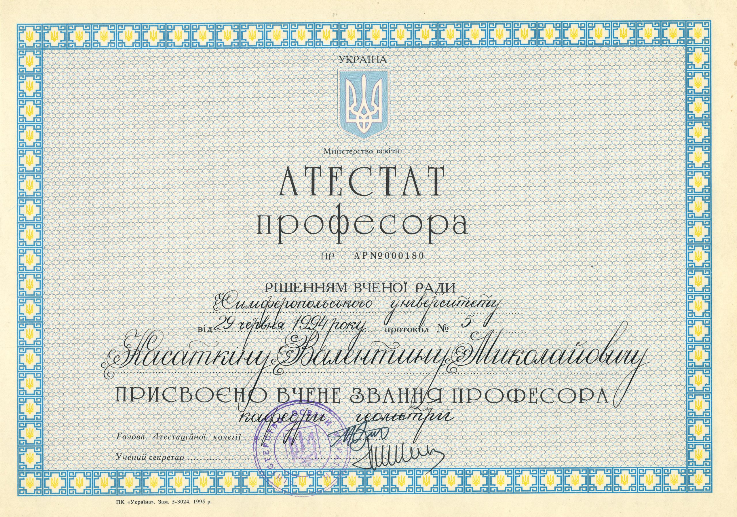 В 1965 г. он вместе с семьей – женой Зайцевой Людмилой Александровной и дочерью Ириной – переехал в Симферополь. Начал с должности старшего преподавателя кафедры математического анализа, с 1967 по 1974 гг. работал начальником вычислительной машины МК, с 1974 по 1990 гг. – доцентом кафедры геометрии, с 1990 г. и до последнего дня – деканом факультета довузовской подготовки.